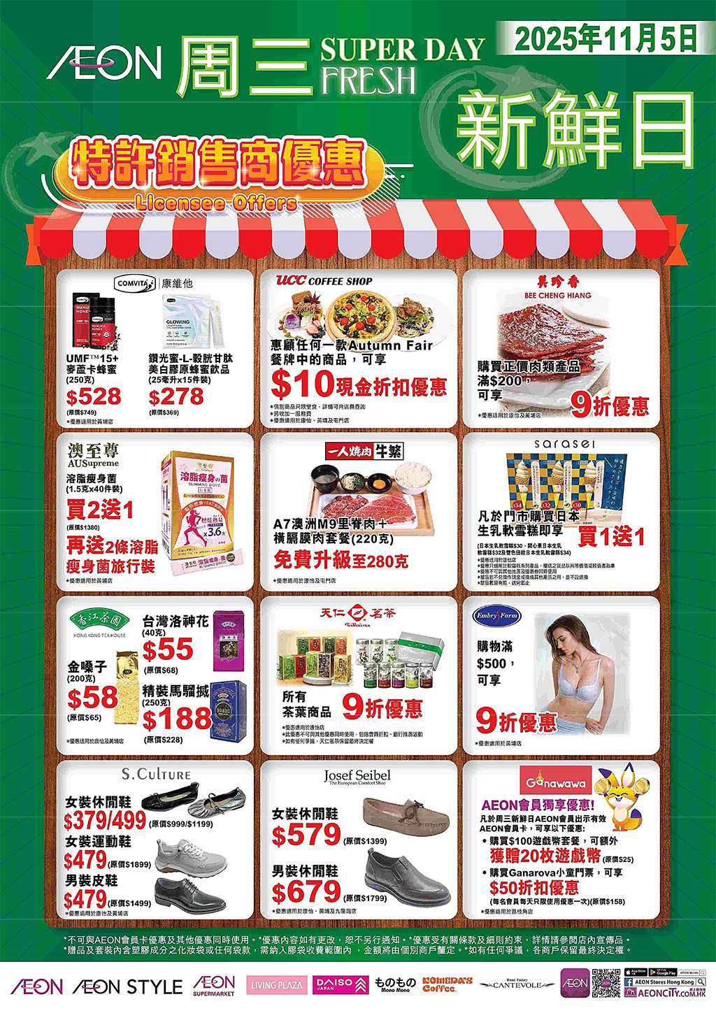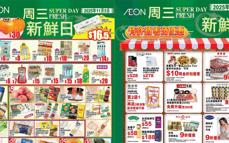 AEON 永旺周三大特賣 / 新鮮日又嚟啦,萬勿錯過!指定推廣日期:2025 年 11 月 5 日(星期三)。