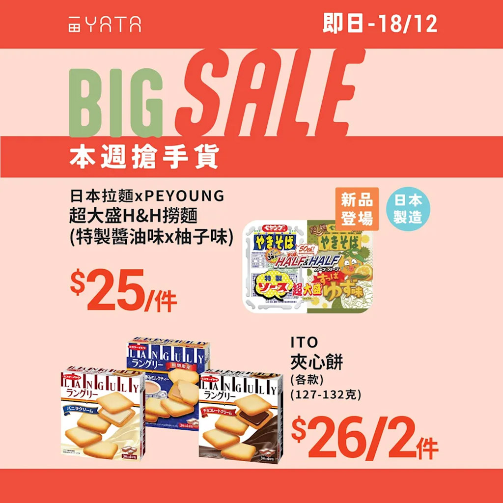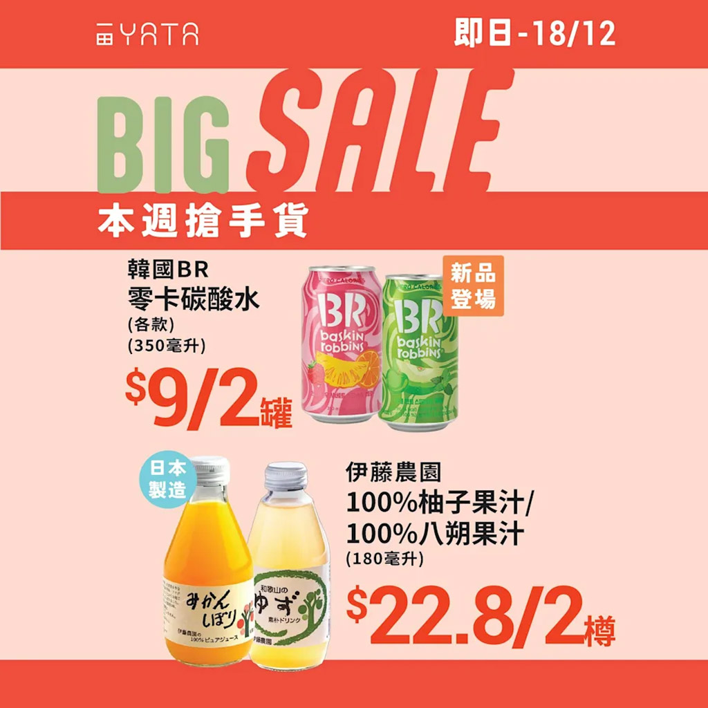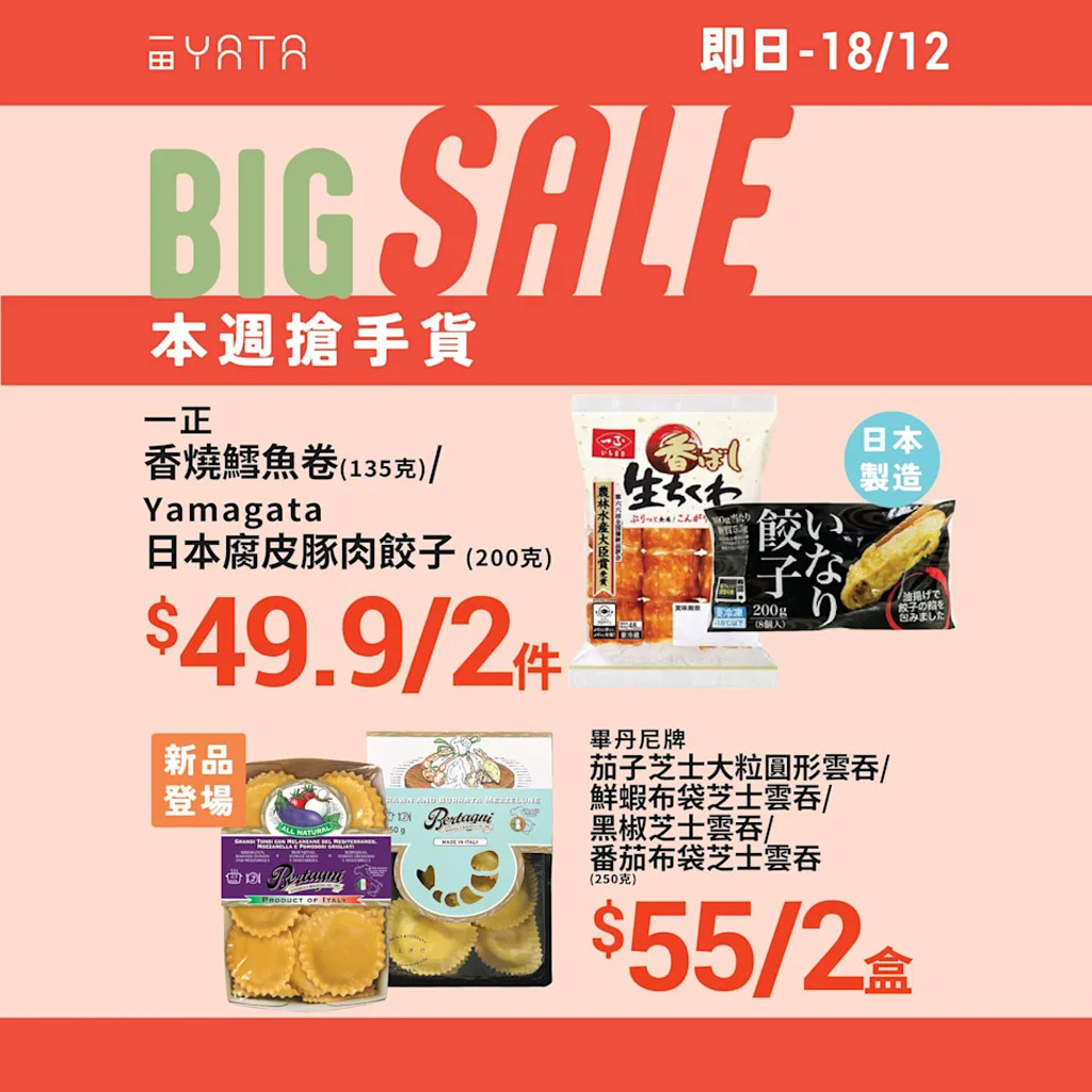 YATA 一田超市本週搶手貨優惠由即日至 12 月 18 日舉行,好多超市食品均有減價,買定糧食留喺屋企煮飯仔同煲劇就啱晒。