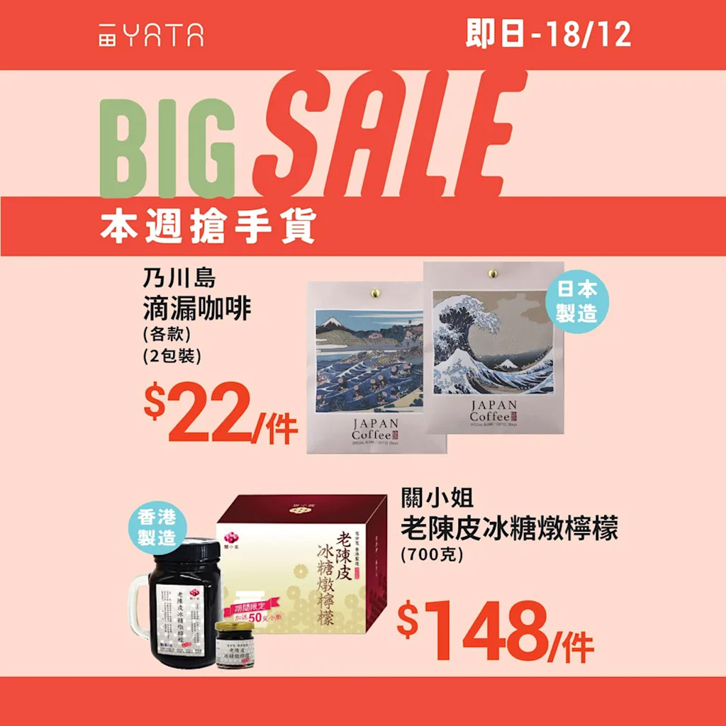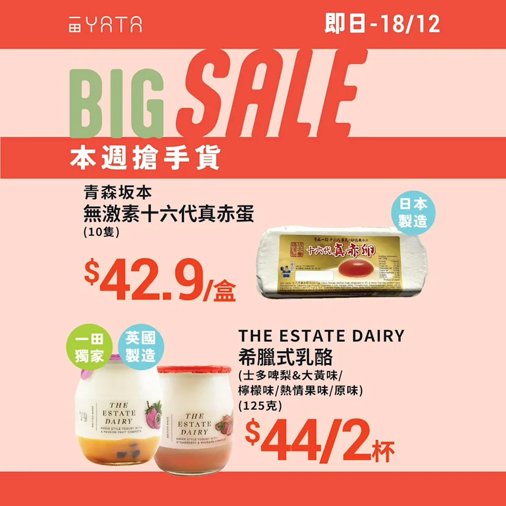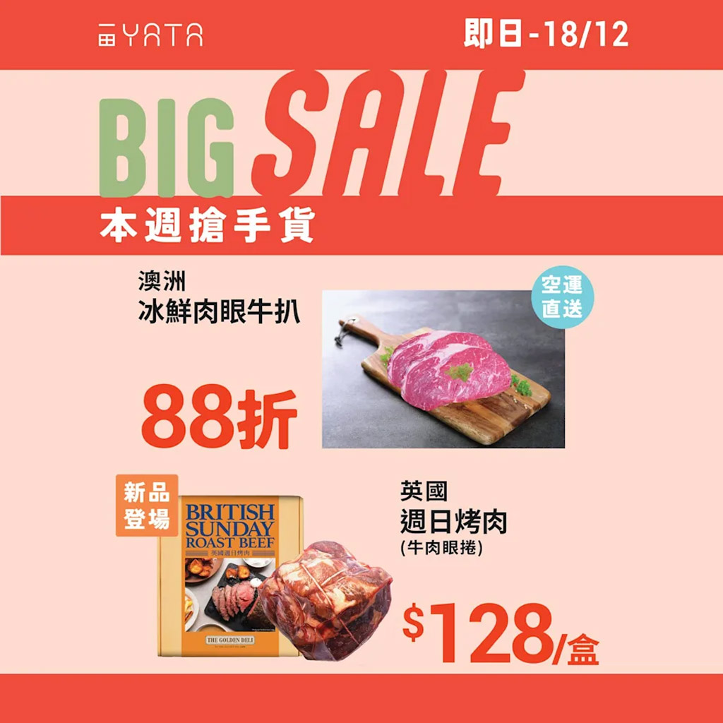 YATA 一田超市本週搶手貨優惠由即日至 12 月 18 日舉行,好多超市食品均有減價,買定糧食留喺屋企煮飯仔同煲劇就啱晒。