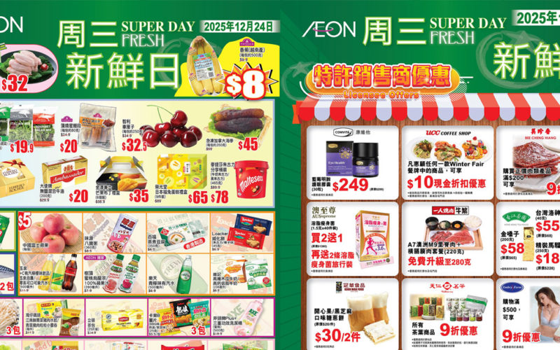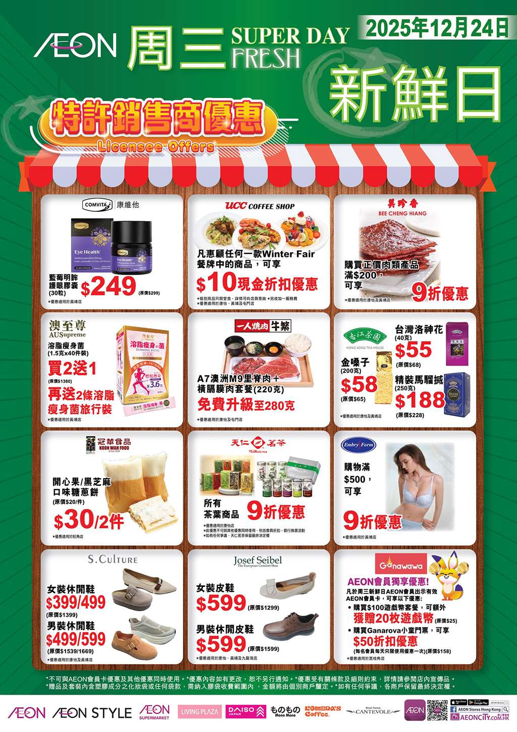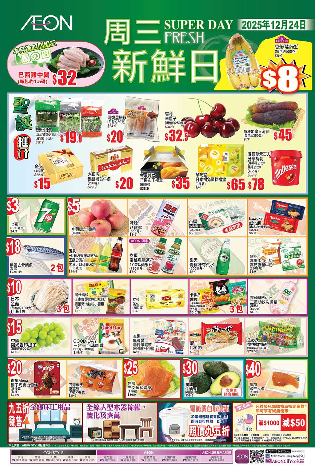 AEON 永旺周三大特賣 / 新鮮日又嚟啦,萬勿錯過!指定推廣日期:2025 年 12 月 24 日(星期三)。